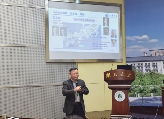 应材料科学与工程学院和湖北大学先进宽禁带半导体材料与器件研究中心邀请,江南大学敖金平教授于4月9日下午莅临我校访问交流,并在会议中心思诚厅为全校师生作了主题为“氮化镓射频功率器件的研究与应用”学术讲座。讲座报告会由材料科学与工程学院副院长夏晓红教授主持。