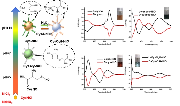 图1.不同手性配体诱导的氧化镍纳米颗粒及其对应的圆二色特性。