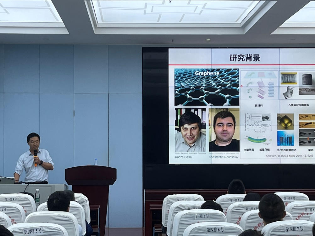 “二维纳米材料”以石墨烯,Mxene为代表。报告中,李晓锋教授从石墨烯的发现出发,介绍了石墨烯基复合材料的特点,之后重点讲述了其中的高导热复合材料。报告中李教授详细分析了表面修饰、组装形貌、材料复合等因素对二维纳米材料性能及应用的影响。提问环节,会场师生展开了热烈的讨论,李教授展望了两校合作的机会和可能性。
