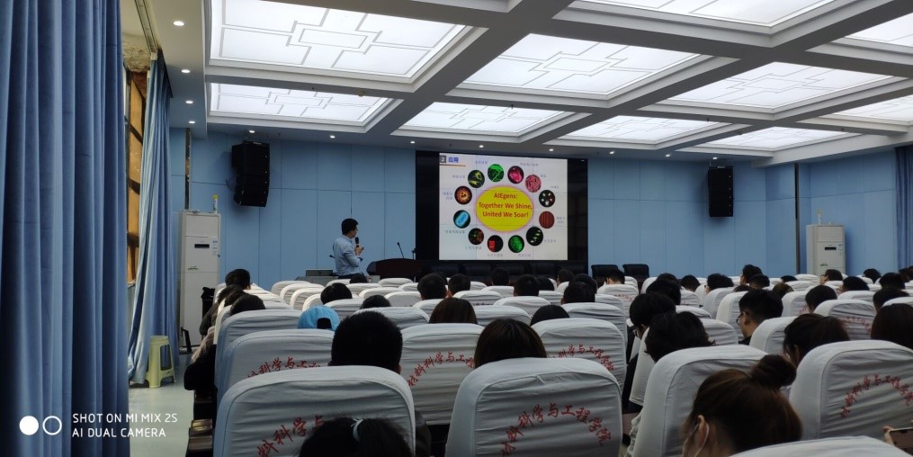 “聚集诱导发光”是由香港科技大学唐本忠院士提出的具有原创性的新概念、新理论,是国际上由中国科学家引领的新兴热门研究领域,能有效地解决目前光电材料和生命科学领域中遇到的聚集诱导淬灭问题。报告中,冯海涛教授介绍了聚集诱导发光的产生机理,着重阐述几种具有聚集诱导发光材料的设计与应用。报告内容包含了超分子化学、手性化学、室温磷光等与聚集诱导发光结合产生的新的材料行为,并介绍了这些材料在癌症诊断治疗、光动力诊疗、荧光探针、力致变色智能材料等方面的开发与应用。冯教授向参会师生展示了聚集诱导发光的研究进展,详细解答了大家在聚集诱导发光材料研究和分析方面的问题和困难。