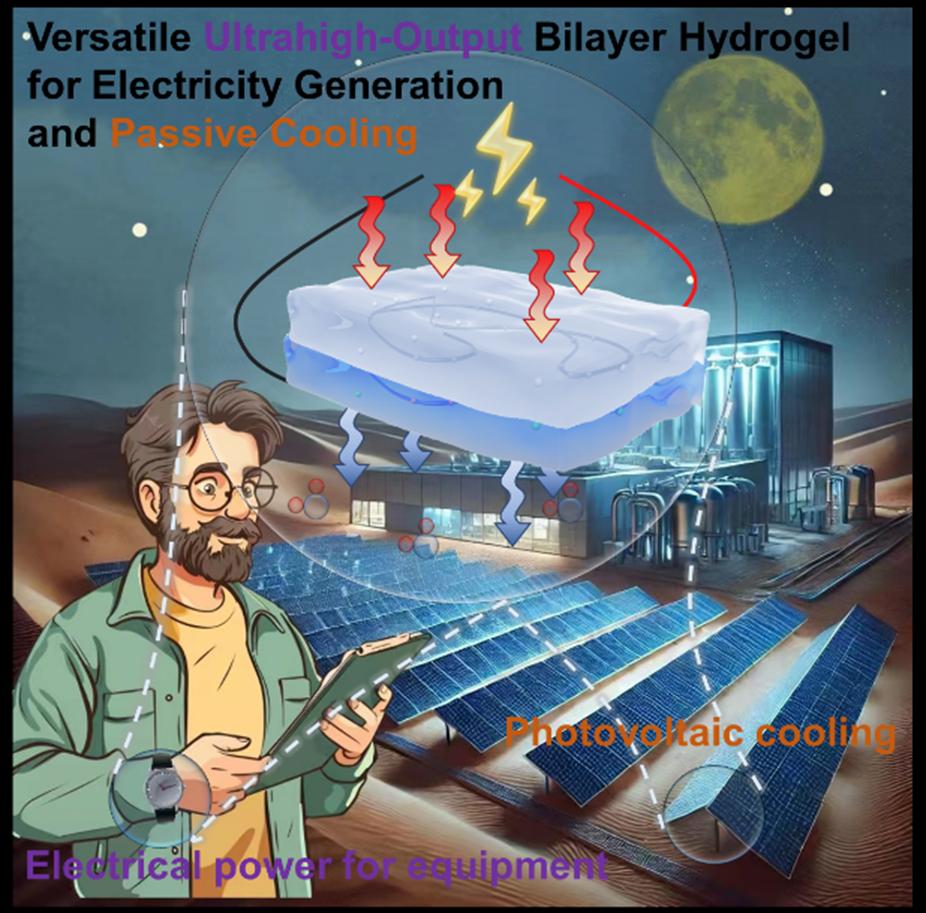近日,湖北大学材料科学与工程学院仿生摩擦课题组郭志光教授课题组在学术期刊《Advanced Functional Materials》发表了题为《Versatile Ultrahigh-Output Bilayer Hydrogel for Electricity Generation and Passive Cooling》的研究成果,2024级硕士研究生陈国鹏为第一作者,谢尚珍博士和郭志光教授为通讯作者。