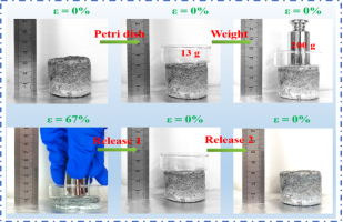 文章主要探讨了聚乙烯醇(PVA)、黄原胶(XG)和戊二醛(GA)的配比对制备具有理想三维多孔结构RAs的相对最佳实验参数。研究了RAs的形貌、压缩性、隔热性和疏水性。据实验数据可得,在控制实验参数下得到了相对最佳的RAs。此外,通过模具调整RAs的尺寸以满足特定的应用要求。RAs具有良好的压缩回弹特性,形变67%后依然可恢复原状。还表现出优异的隔热性能,在200 ℃以下的温度可保持稳定。通过表面改性的RAs具有极强的疏水稳定性,在隔热应用领域可防止水份的侵蚀。
