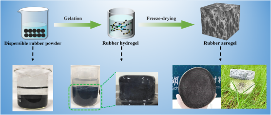 新加坡国立大学的一组研究人员发现汽车废旧轮胎中的尼龙纤维通过适当的处理,可以制备得到气凝胶。但是他们的工作只利用了废旧轮胎中含量极少的尼龙纤维,而轮胎中含量高的橡胶却并未实现回收利用。废轮胎中的橡胶胶粉是否也能做成气凝胶呢?