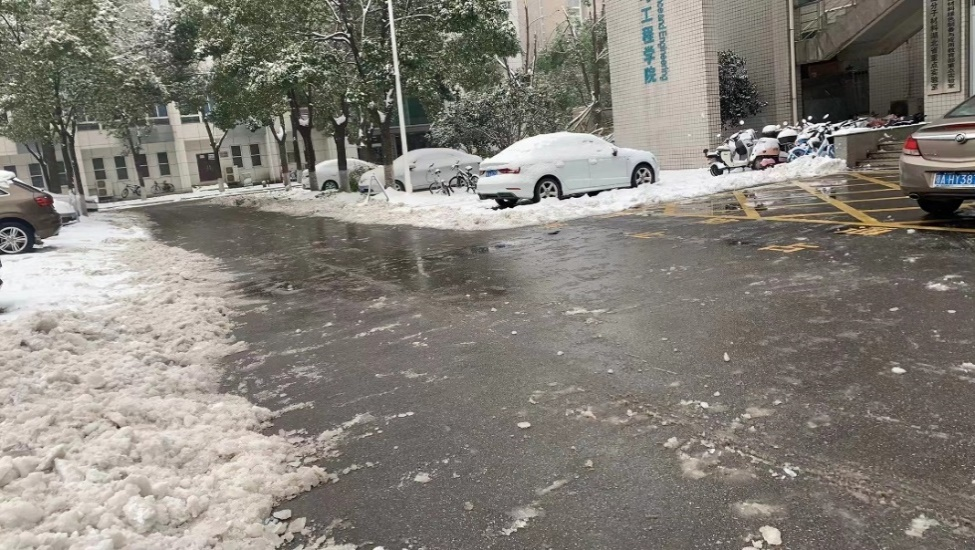 近日,武汉市连降大雪,道路结冰,给师生出行带来诸多不便。为消除道路安全隐患,2月6日下午,学院党委书记陈亮、院长郭志光、副院长梅涛组织郑自建、陈绪兴、杨付超、唐蜜、李荣、汪洋、艾书伦老师们开展扫雪除冰活动,全力保障学院主干道道路畅通,护航师生出行安全。