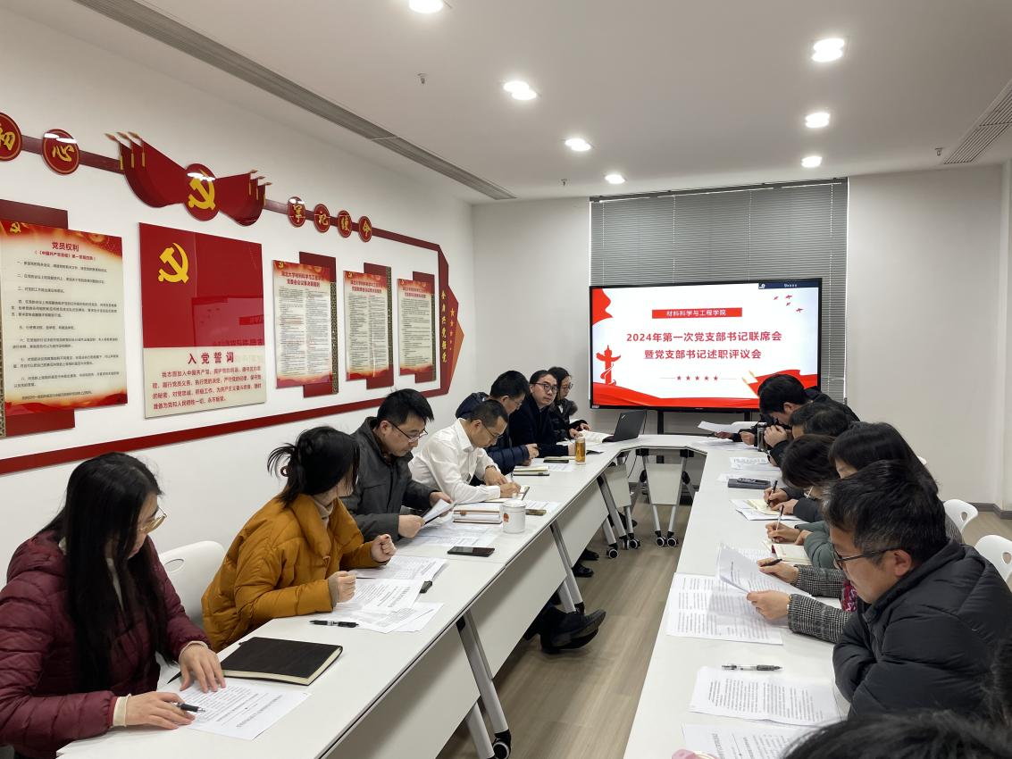 党委书记陈亮就各支部书记述职情况作了逐一点评,充分肯定了各支部过去一年开展的工作,并结合近期印发的《材料科学与工程学院党建工作指导意见》,对本年度党建工作提出了要求。他强调,基层党建工作要以政治建设、组织建设、思想建设为核心,在党的作风和纪律建设、党风廉政建设、党务工作、统战和群团工作、宣传工作几个维度上下工夫,以“一流党建促进一流学科建设、一流专业建设、一流课程建设、一流师资建设、一流人才培养、一流社会服务、一流学术研究、一流内部治理、一流学院环境、一流国际交流”,通过“一融双高”创建学院党建品牌、汇支部党建特色,以高质量党建引领学院高质量发展。