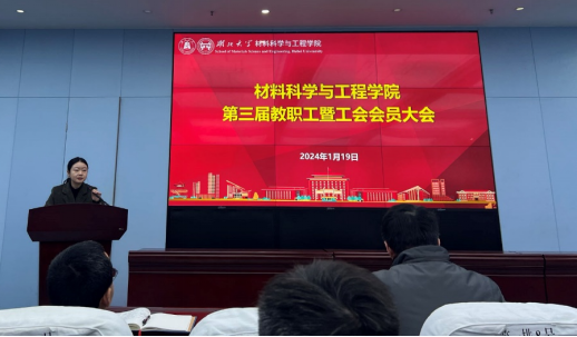 1月19日材料科学与工程学院第三届教职工暨工会会员大会顺利召开。学院全体领导、教职工及工会会员参加会议,会议由院党委副书记鲁力格格主持。