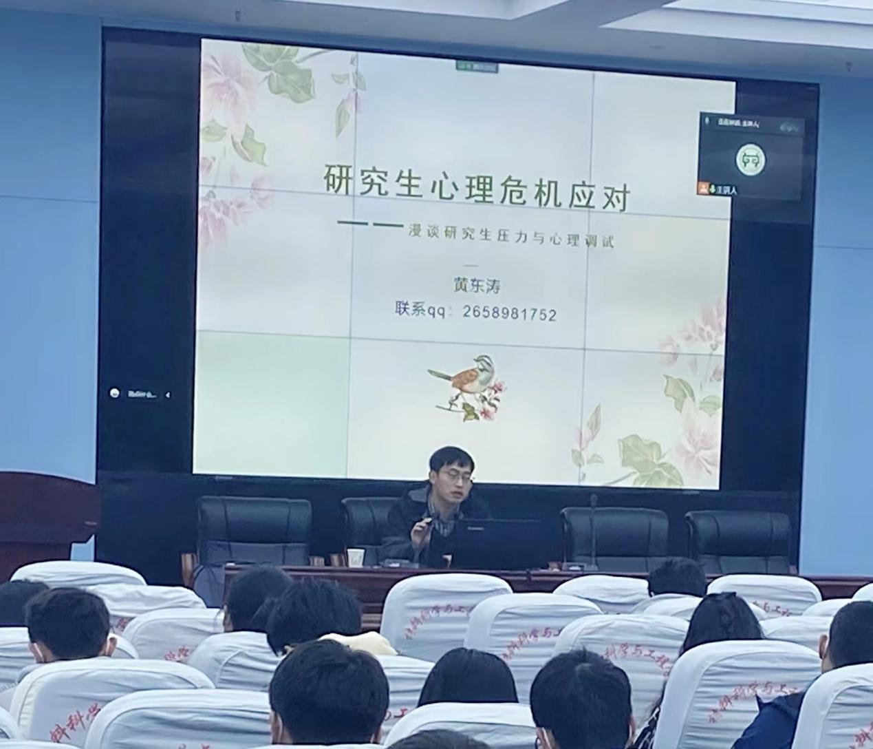 为进一步加强和改进研究生心理健康教育工作,帮助研究生养成理性平和的健康心态,提高研究生心理健康水平,2022年11月21日、22日,材料科学与工程学院邀请研究生工作部副部长、国家二级心理咨询师李明老师,心理健康教育中心专职教师黄东涛老师,为我院2022级全体研究生分别开展了以《情绪管理与压力应对》和《研究生心理危机应对》为主题的心理健康教育讲座。