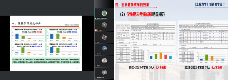 我院有意引导老师潜心教书育人、不断提高教学水平和教学质量,并想借此契机选拔出一批热衷教学且擅长教学的优秀教师,经学院动员及教师们自主报名,共有9人参与院赛。2022年12月9日下午2点本次“教创赛”院赛通过腾讯会议方式如期举行。本次院赛学院高度重视,全体领导班子被邀担任评委,并鼓励学院其他感兴趣的老师入会旁听。此外,特邀本科生院副院长王国成教授、本科生院教研办刘冰欣老师莅临指导。