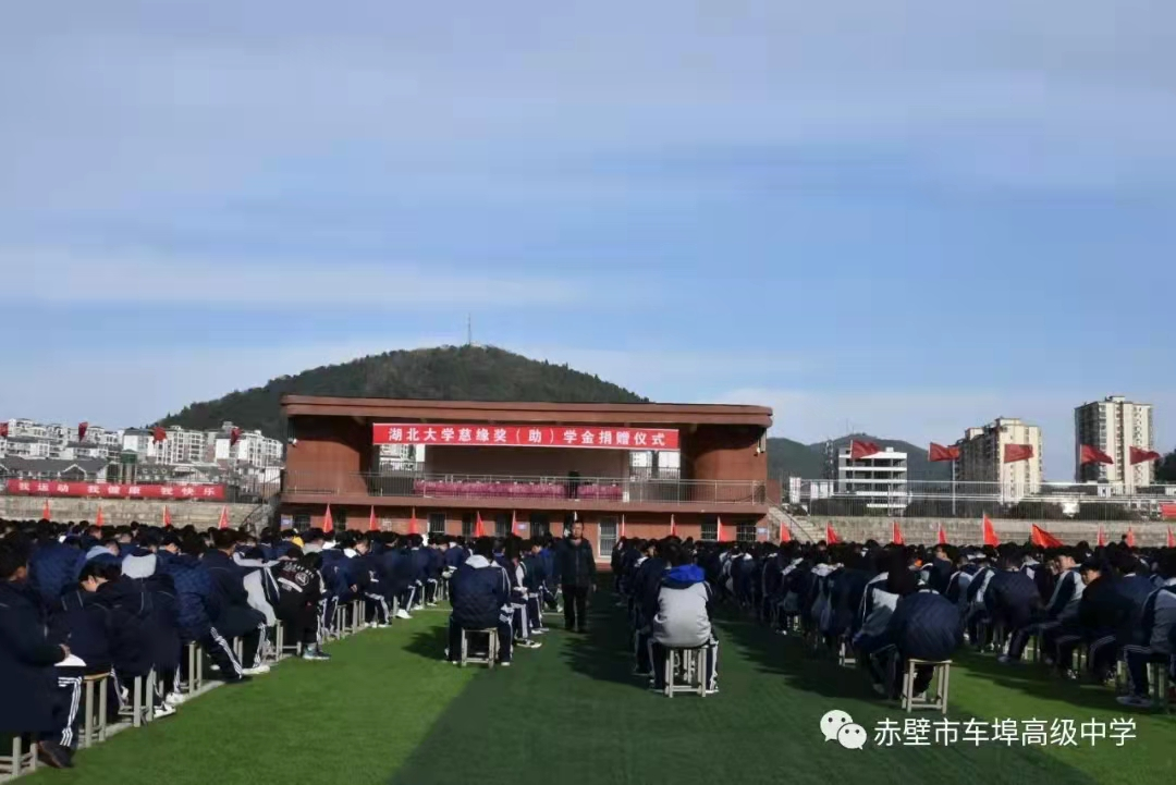 下午,王世敏一行来到赤壁市车埠高级中学举行慈缘奖(助)学金颁发仪式,为十二名受助学生颁发奖助学金。赤壁市政府副市长甘志宝、市政府办副主任王莉、教育局局长朱翔,车埠高中党委书记吕路、校长龙成名以及全校师生参加了仪式。随后,蒋选丰教授为车埠高中学生作题为《新材料中的“诗”与“远方”》科普讲座。