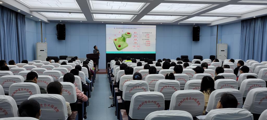 10月26日上午,郑克玉老师在材料学院二楼报告厅,进行了《工程制图》之“阅读组合体视图”课堂教学展示。材料学院党委书记宋韧、院长郭志光、副书记鲁力格格、分管教学副院长梅涛、教学名师王国成及全院30多名教师亲临课堂观摩学习。