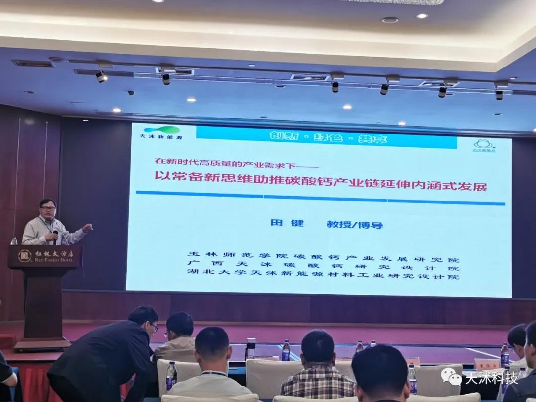 2020年10月30日,第六届碳酸钙产业博览会暨广西碳酸钙行业协会年会·2020年碳酸钙研发高端学术论坛在广西南宁隆重召开,自治区市/县政府、高校科研院所、行业协会、业界优秀企业等领导、专家、嘉宾参加会议,围绕“聚焦科技创新,发展绿色钙业”主题进行交流。我院教授、湖北大学天沭新能源材料工业研究设计院院长田键作为特邀嘉宾出席,以“在新时代高质量的产业需求下——以常备新思维助推碳酸钙产业链延伸内涵式发展”为题作大会主旨报告。