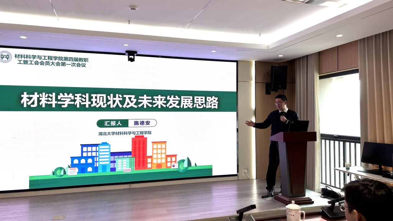 院长施德安代表学院作工作报告,系统回顾了2025年学院在政治建设、学科发展、科研创新与社会服务等方面取得的进展,并对材料学科的现状与未来方向作了深入阐述。报告指出,2026年是“十五五”规划起步之年,学院将坚持高质量党建引领,落实“三全育人”“五育并举”,强化青年教师全过程培养,加大高层次人才引进与培育力度,深化学科交叉融合,全面提升科研创新与社会服务能力,加快建设特色鲜明、优势突出的高水平学院。