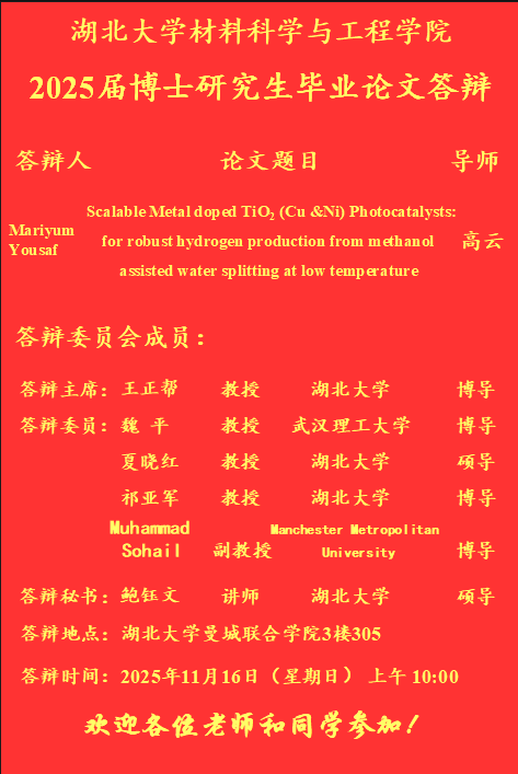 材料科学与工程学院2025年下半年答辩公告