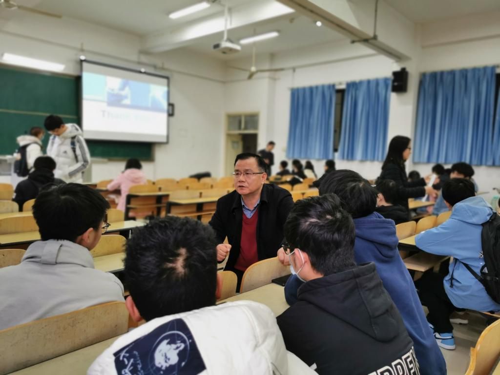 在集体见面会上,章天金教授作了《新时代一流本科教育的形式与任务》和《材料科学与工程专业简介》主体报告,强调作为新时代的大学生要认清现阶段高等教育所面对的新形式新任务,找准地位,努力学习。章天金教授报告结束后,对全体学生提出三点建议:一是大学期间要努力学习、培养各方面的能力是大学生的首要任务;二是要认真学习,志存高远,追求卓越;三是要懂得和学会感恩,感恩国家、父母和学校;徐祖顺教授作了指导报告。他向学生讲述了材料科学与工程学院的专业课题研究方向,并详细介绍了各专业的师资力量。随后,徐祖顺教授提出了三点建议与期望:“一是认真对待课程学习,不挂科是底线;二是打下坚实基础,在学习专业知识的同时培养各种能力,尤其是自学能力;三是发掘自身的兴趣,做好人生规划。”他强调,在课程学习之余也要注重身体锻炼、积极参加各项活动,积累相关经验并提升能力。