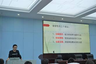 第一部分的开始,陈琴书记带领大家观看了今年的湖北大学新生宣传片和材料学院宣传片,让初来校园的同学们对美丽湖大与所属的材院有了进一步了解,览过了89年湖大风雨,同学们的归属感便不由心生。数位领导为新生的第一课上台参讲:副院长施德安先生讲解了材料专业的专业内容,并对材料专业的前途进行展望,让新生对将来的专业学习拥有更加清楚的认知与自豪感;随后由王国成院长向同学们概述了我院的本科生培养计划,让同学们明确了大学的学习目标,增强了培养自我的责任感;何顺进书记为新生真挚地送予了开学寄语、为他们的大学新生活给予了殷切的希望和鼓励。