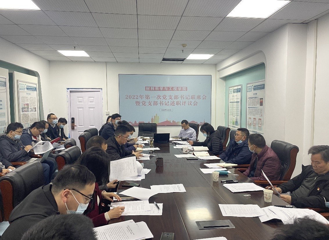 会上,各党支部书记重点围绕支部“2021年度党建主要工作”“特色亮点和突出问题”“下一步工作打算”以及“对学院党委的意见建议”等依次进行述职汇报。院党委副书记鲁力格格部署近期重点党建工作。与会人员就《材料科学与工程学院2022年度党建和思想政治工作要点(征求意见稿)》进行了交流讨论。