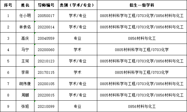 根据《关于印发< 湖北大学教师申请招收博士研究生审核办法(修订)>等三个文件的通知》(校研字﹝2019﹞8号),经材料科学与工程学院分学位评定委员会全体委员审议表决,同意任小明等9名教师2022年招收学术/专业硕士研究生的申请,认定鲍钰文等90名教师具备2022年招收学术/专业硕士研究生资格。现将结果公布如下: